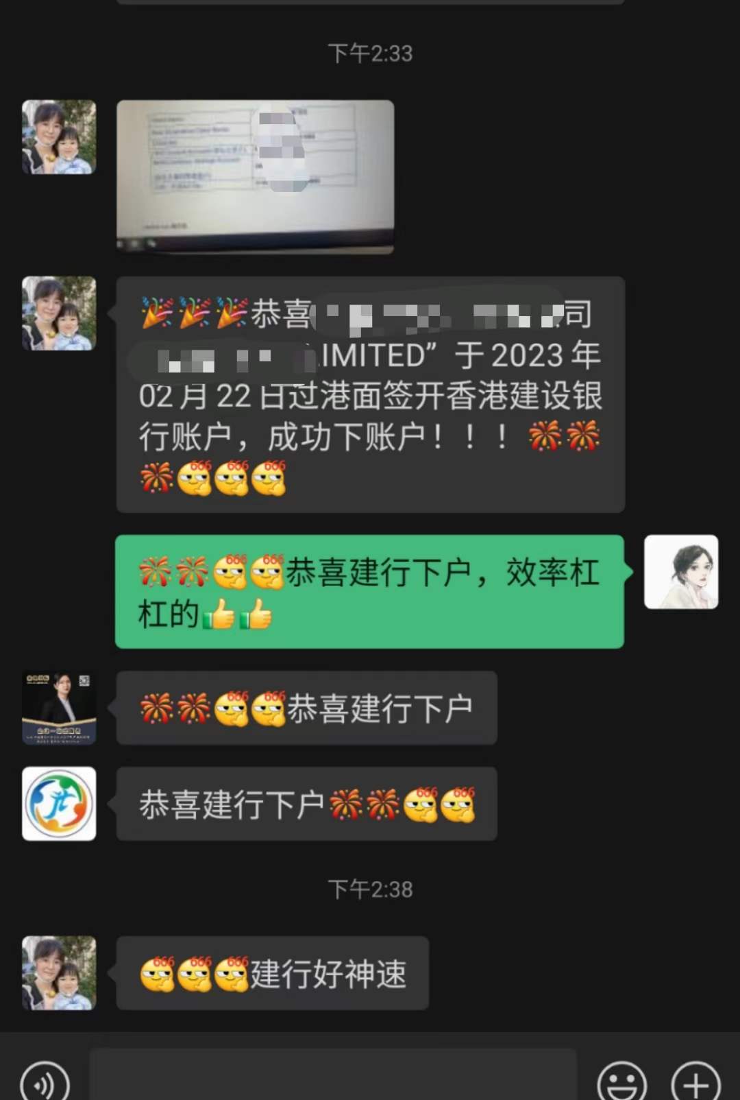 恭喜:“LQ实业有限公司” 于2024年02月22日过港面签开香港建设银行账户,两周成功下账户!!!
