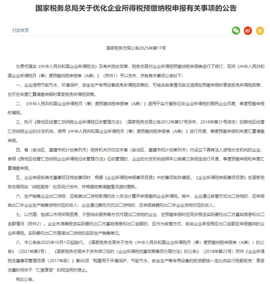 2025年7月7日,国家税务总局发布《2025年第17号公告》,对企业所得税预缴申报表进行修订,其中第七条对出口业务作出重大调整,自2025年10月1日起正式生效! 新规要求代理出口企业必须实名申报实际货主信息,否则将面临高额补税风险!