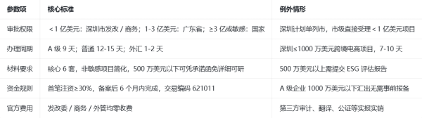 中小企业办理 ODI 备案无需逐部门跑,2026 年非敏感项目实行 “线上一窗申报、三部门并联审核”,深圳作为计划单列市,3 亿美元以下非敏感项目直接在市级部门备案,无需转报省级。A 级企业最快 9 天办结,普通企业 12-15 天,银行外汇登记 1-2 天即可完成资金汇出。官方零收费,代办服务费按项目复杂度定价,轻资产 1-3 万元、实业 3-8 万元、复杂项目 8 万元以上。
